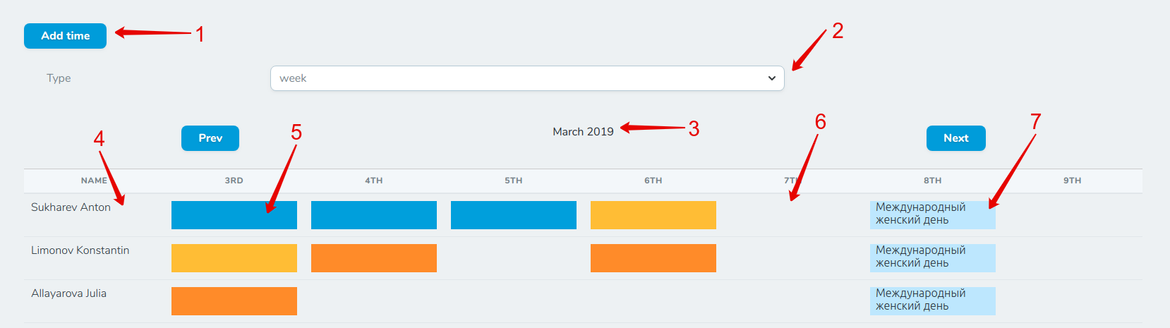 Типы отсутствий могут быть разные (задать их можно в разделе Time management types), но есть особые: