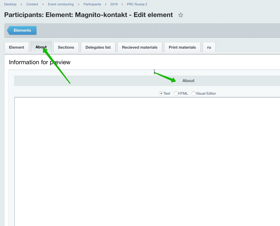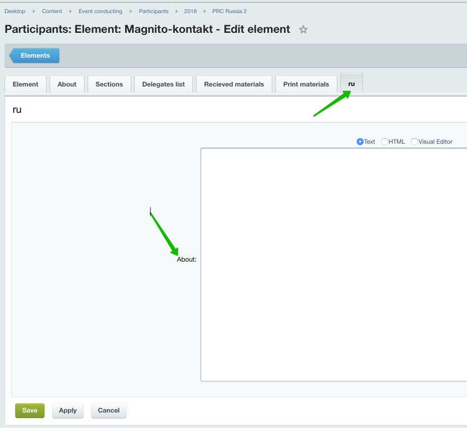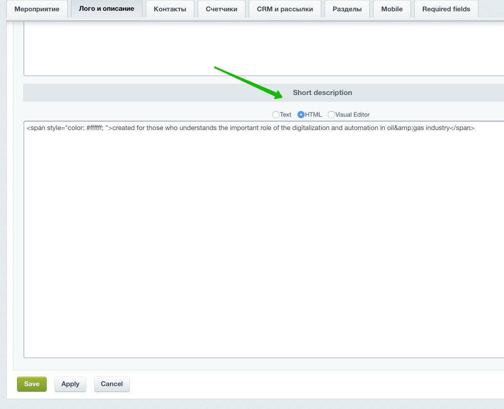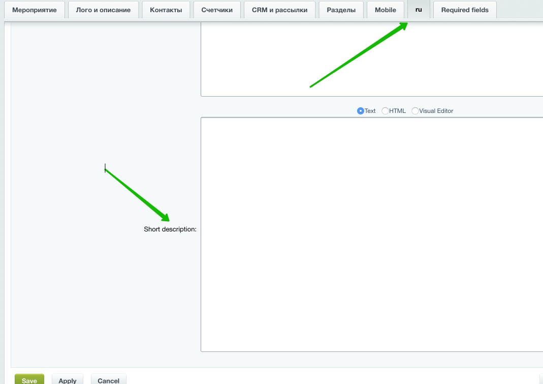 Описание на других языках заполняется на соответствующей вкладке языка (появляется в многоязычных мероприятиях):