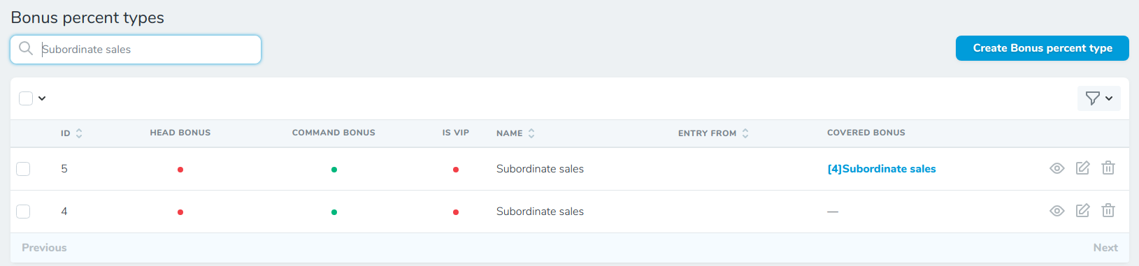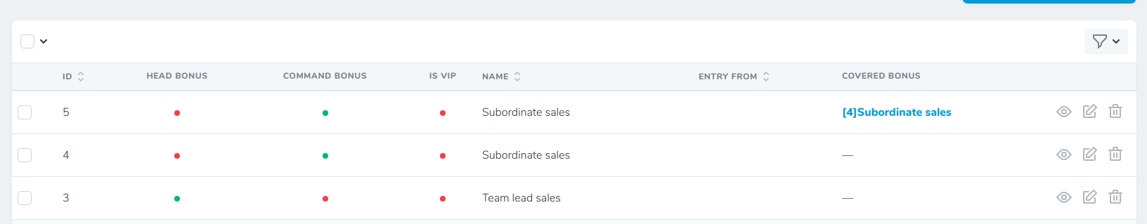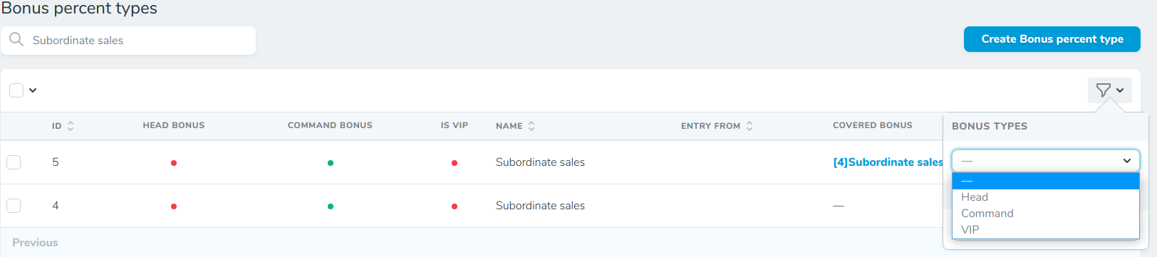 - Bonus types (head - для руководителя / command - командный / VIP)