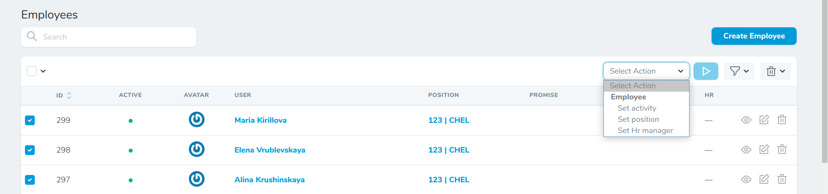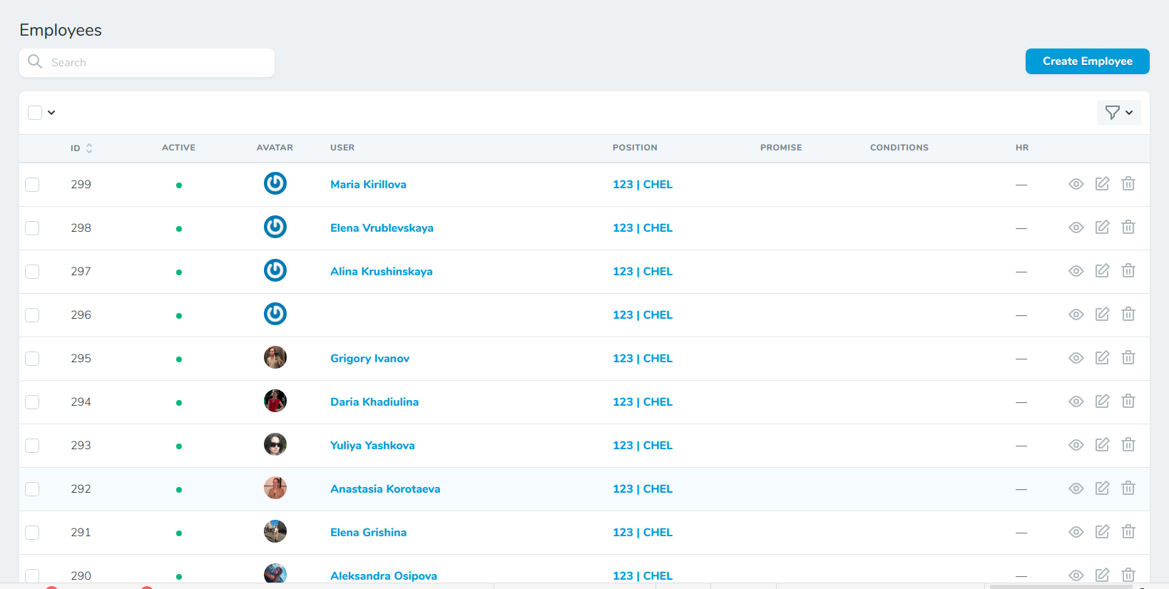 Сотрудники в системе, необходимы для расчёта зарплат, в зависимости от занимаемых ими должностей. Добавляются в систему автоматически.