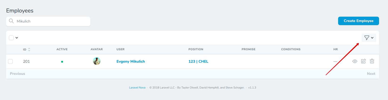 Фильтры в списке пользователей расположены в правом верхнем углу: