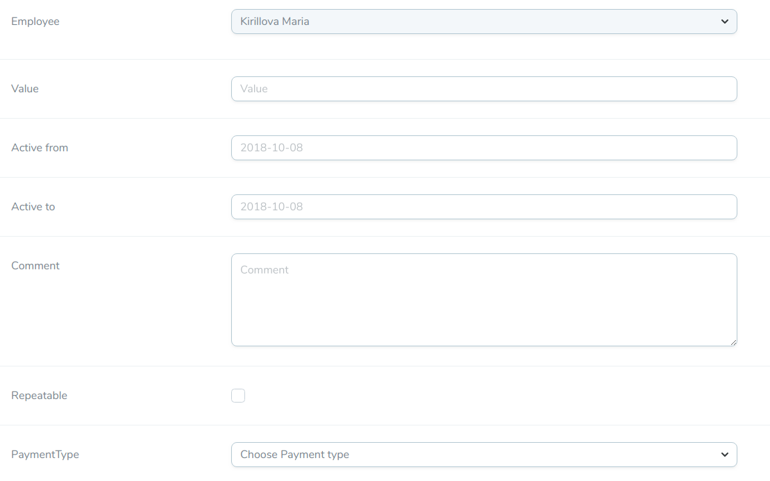 - Repeatable - повторяемое значение (участвует в расчётах каждый месяц)