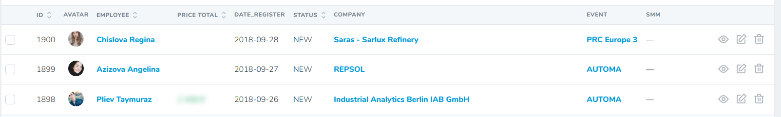 Данные в этой таблице заполняются автоматически при сохранении / редактировании / удалении / просмотре сущности или сущностей, связанных с ней. Показано кто изменил, что изменил, когда изменил и какие значения у сущности были до изменения