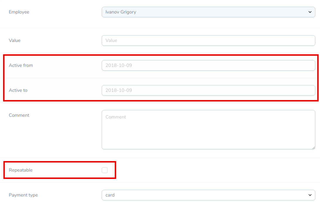 - Активность (неактивные должности не участвуют в расчёте зарплат)
