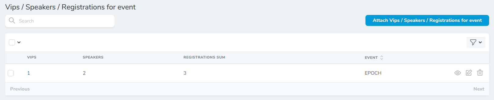 Vips / Speakers / Registrations for event