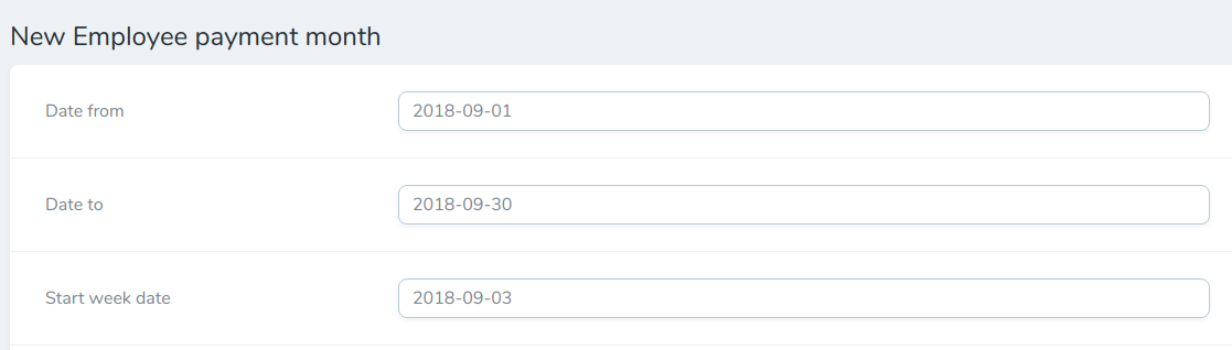 По умолчанию даты будут подстанавливатсья на основании предыдцщих созданных зарплатных месяцев, а также текущей даты