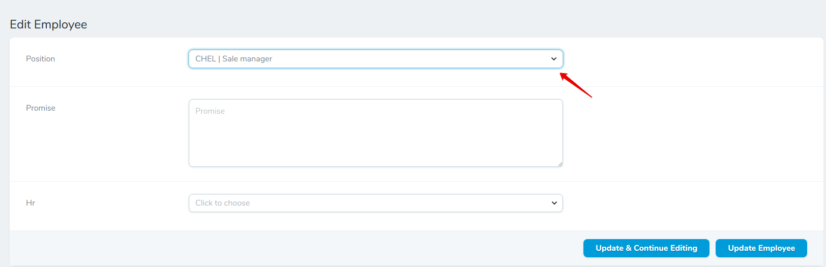 Существует 2 способа прикрепления должноти к сотруднику.