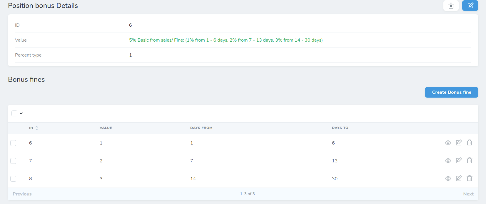 Для каждого бонуса данные периоды указываются отдельно (в детальной карточке бонуса должности)