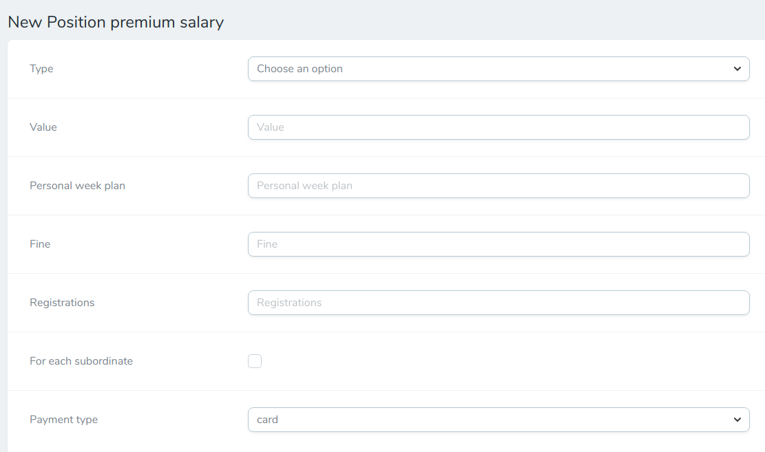 - Заполнить для премий типа (спикеры / делигаты / проектная планка) поля в зарплатном месяце