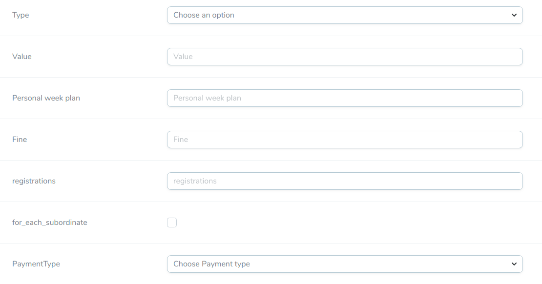 - Type (amount - фиксированная сумма / percent - процент / unit - условные единицы (например часы))